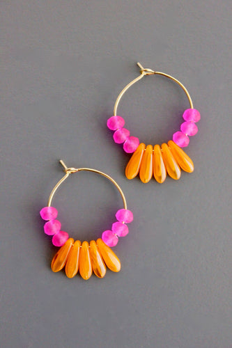 WLLE02 Pink and orange glass hoop earrings